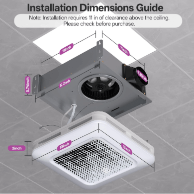 1.Standard installation process for in-ceiling mounting (requires professional electrical setup).
