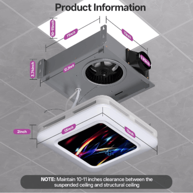 1.Fits standard 11.22” x 11.22” ceiling openings with a 12.20” x 12.20” base.