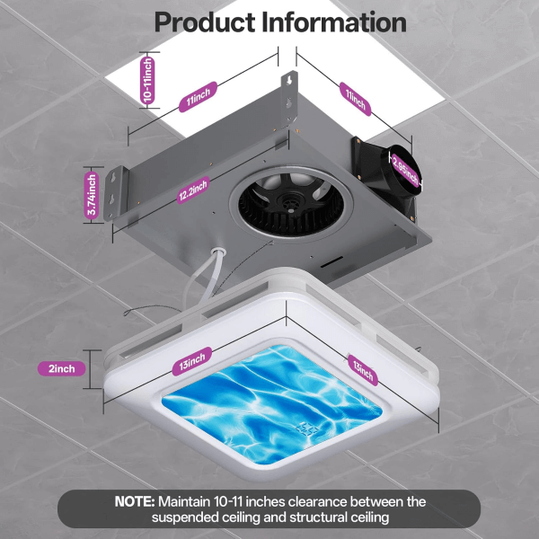 1.Fits standard 11.22" x 11.22" ceiling openings with a 12.20" x 12.20" base.